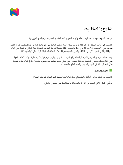في هذا الدرس، سوف نتعلَّم كيف نحدِّد ونَصِف الأنواع المختلفة من المخاليط، وخواصها الفيزيائية.