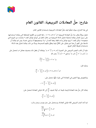 في هذا الدرس، سوف نتعلَّم كيف نحُلُّ المعادلات التربيعية باستخدام القانون العام.