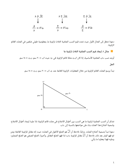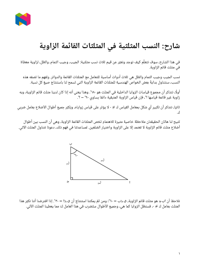 في هذا الدرس، سوف نتعلَّم كيف نوجد ونعبِّر عن قيم ثلاث نسب مثلثية: الجيب، وجيب التمام، والظل، لزاوية معطاة في مثلث قائم الزاوية.