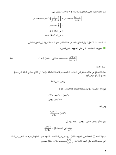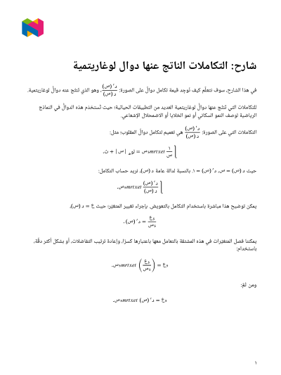 في هذا الدرس، سوف نتعلَّم كيف نُوجِد قيمة تكامل دوال على الصورة: د′(س)/ د(س)، والذي يَنتُج عنه دوال لوغاريتمية.