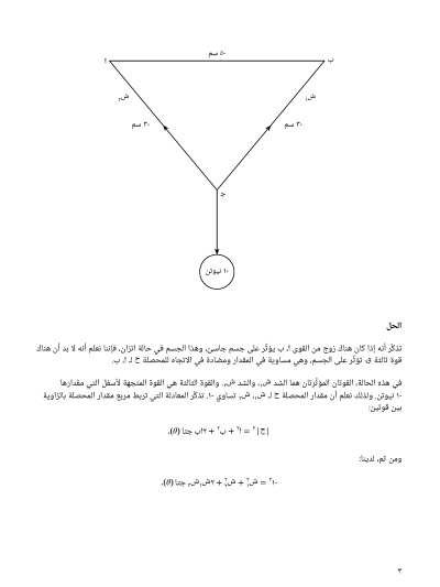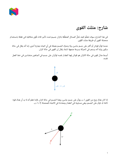 في هذا الدرس، سوف نتعلَّم كيف نحلُّ المسائل المتعلِّقة باتزان جسيم تحت تأثير ثلاث قُوًى متلاقية في نقطة باستخدام محصلة القوى أو طريقة مثلث القُوَى.