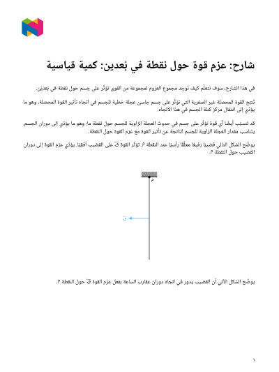 في هذا الدرس، سوف نتعلَّم كيف نُوجِد مجموع العزوم لمجموعة من القُوَى تؤثِّر على جسم حول نقطة في بُعْدين.