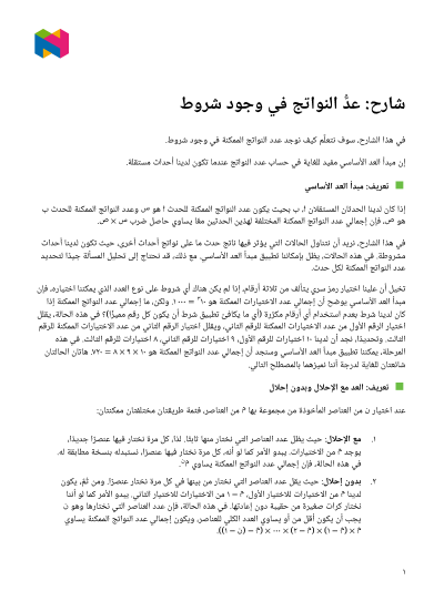 في هذا الدرس، سوف نتعلَّم كيف نُوجد عدد النواتج الممكنة في وجود شروط.