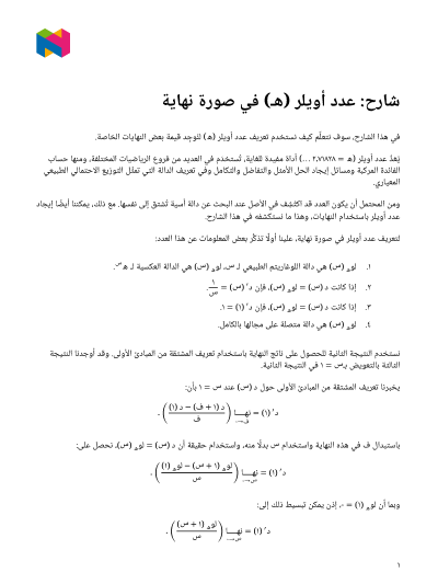 في هذا الدرس، سوف نتعلَّم كيف نستخدم تعريف عدد أويلر (هـ) لنُوجد قيمة بعض النهايات الخاصة.