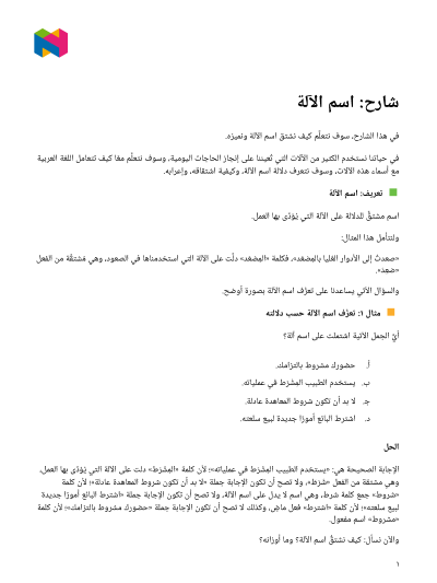 في هذا الدرس، سوف نتعلَّم كيف نشتَقُّ اسم الآلة ونميزه.