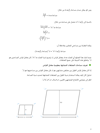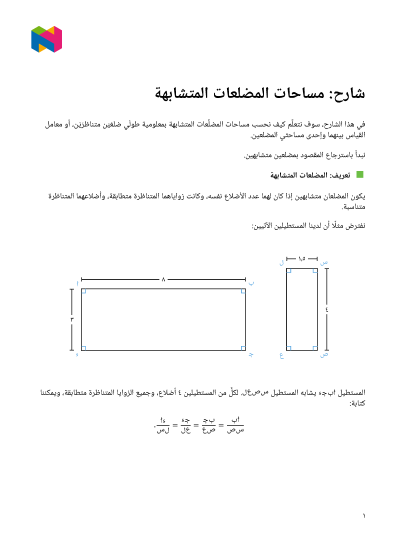 في هذا الدرس، سوف نتعلَّم كيف نحسب مساحتَيْ مضلعَيْن متشابهَيْن بمعلومية طولَيْ ضلعَيْن متناظرَيْن، أو معامل القياس بينهما وإحدى مساحتَيِ المضلَّعَيْن.
