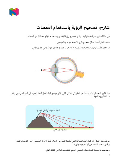 في هذا الدرس، سوف نتعلَّم كيف يُمكِن تصحيح رؤية الإنسان باستخدام أنواع مختلفة من العدسات.
