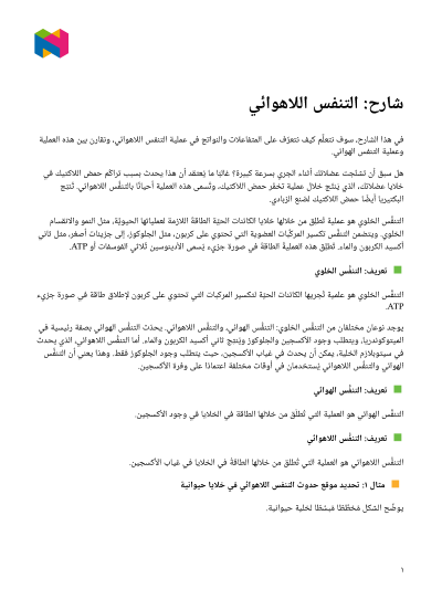 في هذا الدرس، سوف نتعلَّم كيف نتعرَّف على المتفاعلات والنواتج في عملية التنفس اللاهوائي، ونقارن بين هذه العملية وعملية التنفس الهوائي.