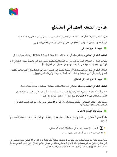 في هذا الدرس، سوف نتعلَّم كيف نُحدِّد المتغيِّر العشوائي المتقطِّع، ونعرِّف دالة التوزيع الاحتمالي المناظِرة له.