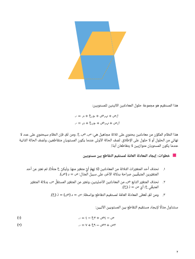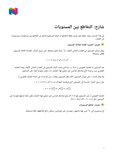 في هذا الدرس، سوف نتعلَّم كيف نُوجِد نقطة التقاطع أو الخط المستقيم الناتج عن التقاطع بين مستقيمات ومستويات في الفضاء.