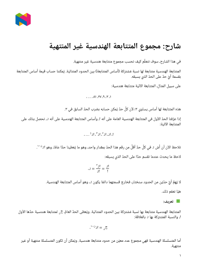 في هذا الدرس، سوف نتعلَّم كيف نحسب مجموع متتابعة هندسية غير منتهية.