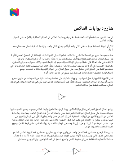 في هذا الدرس، سوف نتعلَّم كيف نحدِّد دخْل وخرْج بوابات العاكس في الدوائر المنطقية، ونُكمل جداول الصواب لبوابات العاكس.