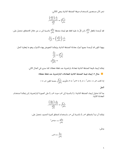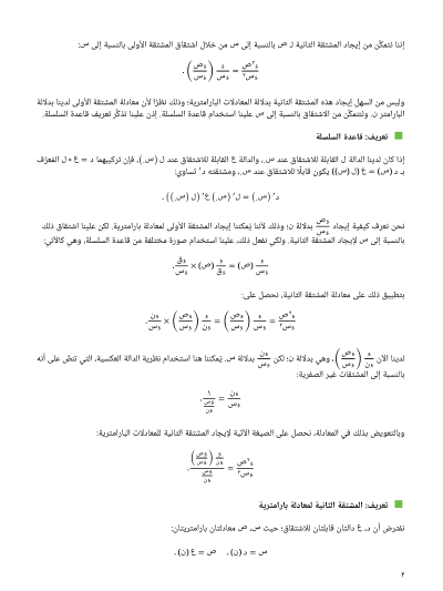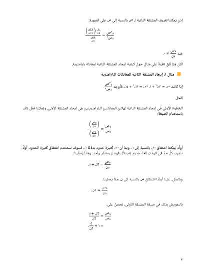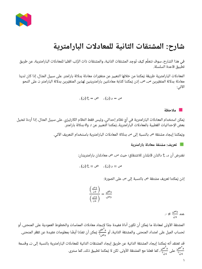 في هذا الدرس، سوف نتعلَّم كيف نُوجد المشتقات الثانية والمشتقات ذات الرُّتَب العليا للمعادلات البارامترية، عن طريق تطبيق قاعدة السلسلة.