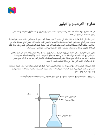 في هذا الدرس، سوف نتعلَّم كيف نفصل المخاليط باستخدام الترشيح والتبلور، ونحدِّد الأجهزة اللازمة، ونحدِّد متى يتعيَّن استخدام كل جهاز على حدة.