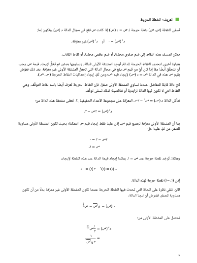في هذا الدرس، سوف نتعلَّم كيف نُوجِد النقاط الحرجة للدالة، ونبحث عن القيم القصوى المحلية باستخدام اختبار المشتقة الأولى.