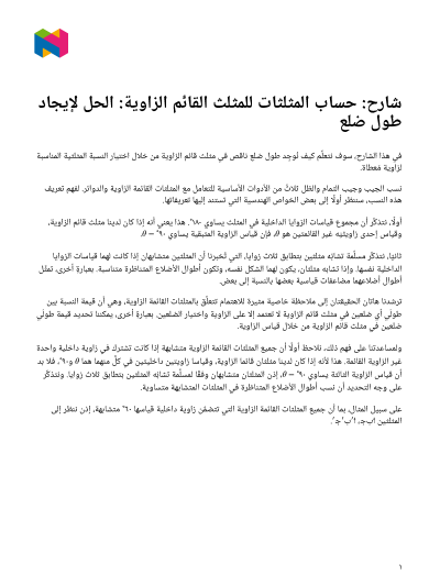 في هذا الدرس، سوف نتعلَّم كيف نُوجِد طول ضلع ناقص في مثلث قائم الزاوية من خلال اختيار النسبة المثلثية المناسبة لزاوية مُعطاة.