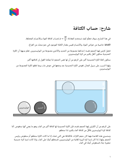 في هذا الدرس، سوف نتعلَّم كيف نستخدم المعادلة: ρ = m/V لحساب كثافة المواد والأجسام المختلفة.