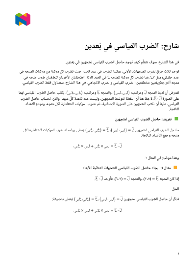 في هذا الدرس، سوف نتعلَّم كيف نُوجِد حاصل الضرب القياسي لمتجهين في بُعدين.