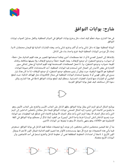 في هذا الدرس، سوف نتعلَّم كيف نحدِّد دخْل وخرْج بوابات التوافق في الدوائر المنطقية، ونُكمل جداول الصواب لبوابات التوافق.