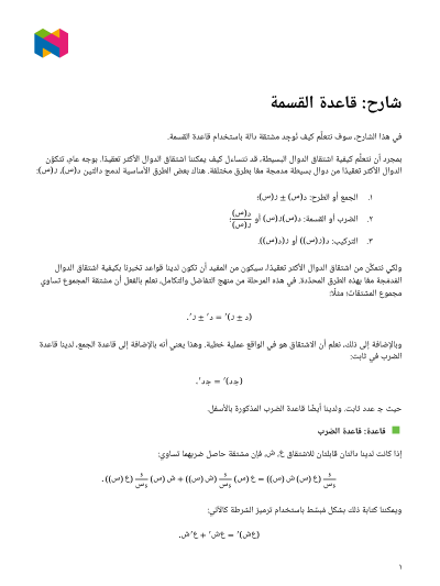 في هذا الدرس، سوف نتعلَّم كيف نُوجِد مشتقة دالة باستخدام قاعدة القسمة.