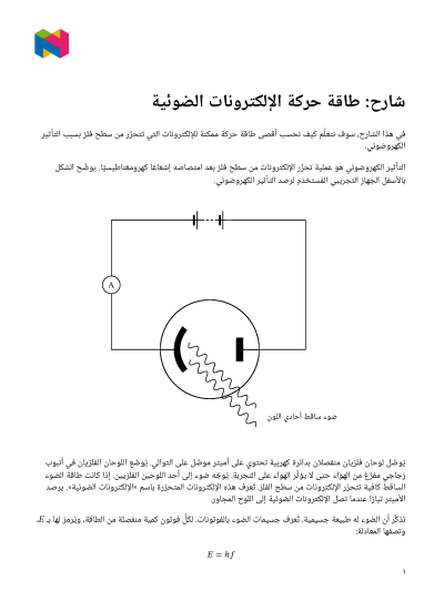 في هذا الدرس، سوف نتعلَّم كيف نحسب أقصى طاقة حركة ممكنة للإلكترونات التي تتحرَّر من سطح فلز بسبب التأثير الكهروضوئي.