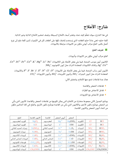 في هذا الدرس، سوف نتعلَّم كيف نحدِّد ونفسِّر أسماء الأملاح البسيطة، ونَصِف تحضير الأملاح الذائبة وغير الذائبة.
