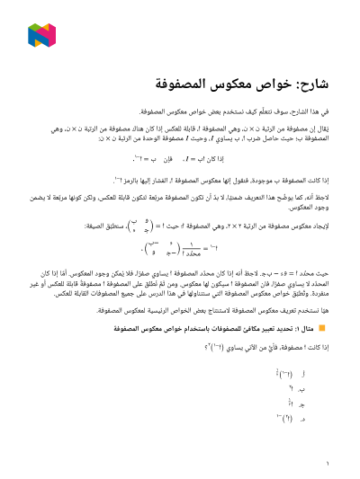 في هذا الدرس، سوف نتعلَّم كيف نستخدم بعض خواص معكوس المصفوفة.