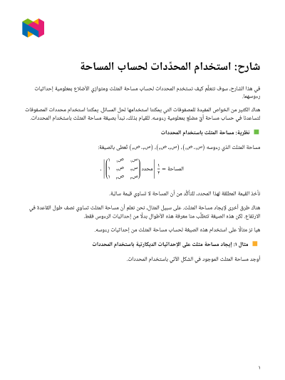في هذا الدرس، سوف نتعلَّم كيف نستخدم المحددات لحساب مساحة المثلث ومتوازي الأضلاع بمعلومية إحداثيات رءوسهما.