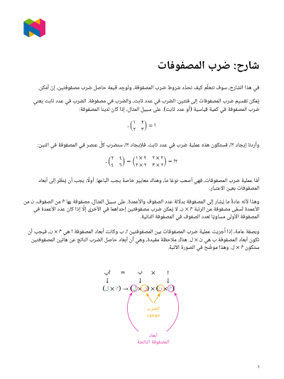 في هذا الدرس، سوف نتعلَّم كيف نحدِّد شروط ضرب المصفوفة، ونُوجِد قيمة حاصل ضرب مصفوفتين، إن أمكن.