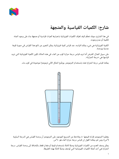في هذا الدرس، سوف نتعلَّم كيف نُعرِّف الكميات الفيزيائية باعتبارها كميات قياسية أو متجهة بناء على وجود اتجاه للكمية أو عدم وجوده.