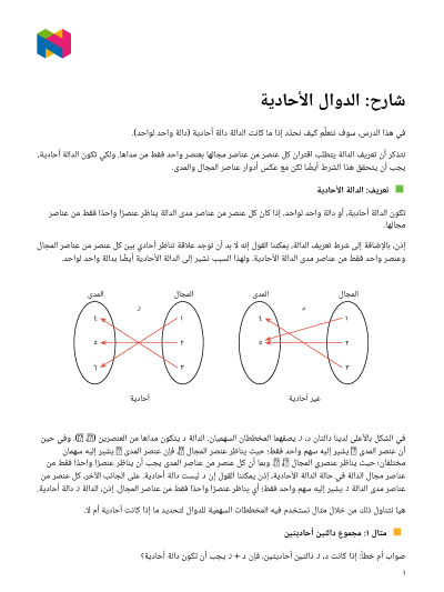 في هذا الدرس، سوف نتعلَّم كيف نحدِّد إذا ما كانت الدالة دالة أحادية (دالة واحد لواحد).