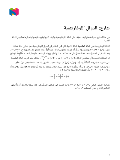 في هذا الدرس، سوف نتعلَّم كيف نتعرَّف على الدالة اللوغاريتمية، وكيف نكتبها ونوجد قيمتها باعتبارها معكوس الدالة الأسية.