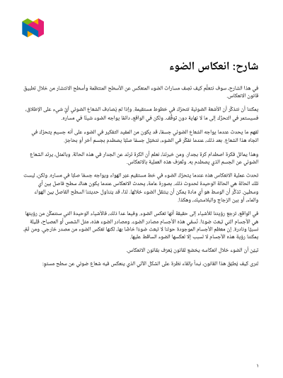 في هذا الدرس، سوف نتعلَّم كيف نَصِف مسارات الضوء المنعكس عن الأسطح المرآوية وأسطح الانتشار، من خلال تطبيق قانون الانعكاس.