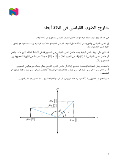 في هذا الدرس، سوف نتعلَّم كيف نُوجد حاصل الضرب القياسي لمتجهين في ثلاثة أبعاد.