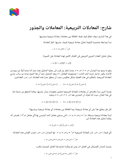 في هذا الدرس، سوف نتعلَّم كيف نَعرِف العلاقة بين معاملات معادلة تربيعية وجذريها.