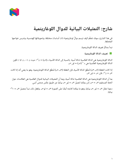 في هذا الدرس، سوف نتعلَّم كيف نرسم دوالَّ لوغاريتمية ذات أساسات مختلفة، وتحويلاتها الهندسية، وسوف ندرس خواصَّها المختلفة.