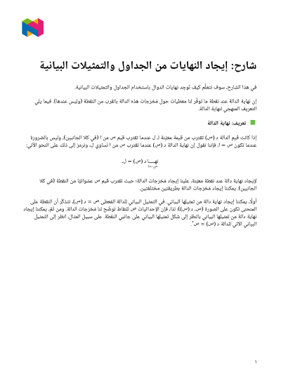 في هذا الدرس، سوف نتعلَّم كيف نُوجِد نهايات الدوال باستخدام الجداول والتمثيلات البيانية.