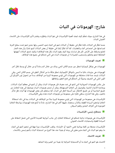 في هذا الدرس، سوف نتعلَّم كيف نَصِف أهمية الأوكسينات في نموِّ النبات وتطوُّره، ونفسِّر تأثير الأوكسينات على الانتحاء الضوئي للنبات.