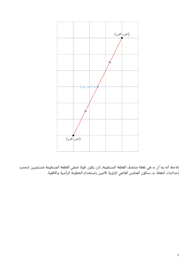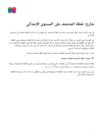 في هذا الدرس، سوف نتعلَّم كيف نُوجد إحداثيات نقطة المنتصف بين نقطتين أو نقطتين طرفيتين على المستوى الإحداثي.