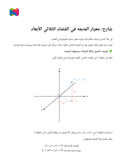 في هذا الدرس، سوف نتعلَّم كيف نُوجِد معيار متجه الموضع في الفضاء.
