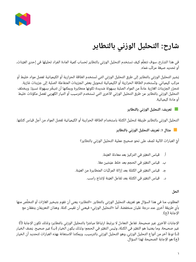 في هذا الدرس، سوف نتعلَّم كيف نَستخدِم التحليل الوزني بالتطاير لحساب كمية المادة المُراد تحليلها في إحدى العيِّنات، أو تحديد صيغة مركَّب مُمَاه.