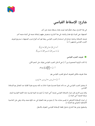 في هذا الدرس، سوف نتعلَّم كيف نُوجِد مقدار مسقط متجه على آخَر.