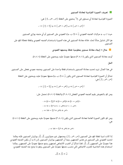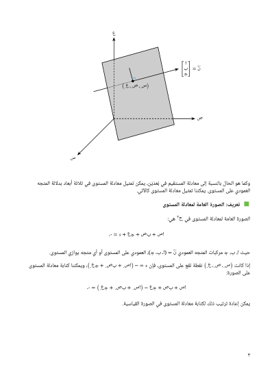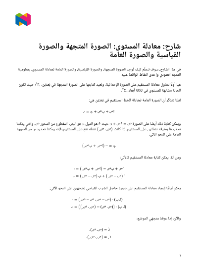 في هذا الدرس، سوف نتعلَّم كيف نُوجد الصورة المتجهة، والصورة القياسية، والصورة العامة لمعادلة المستوى بمعلومية المتجه العمودي وإحدى النقاط الواقعة عليه.