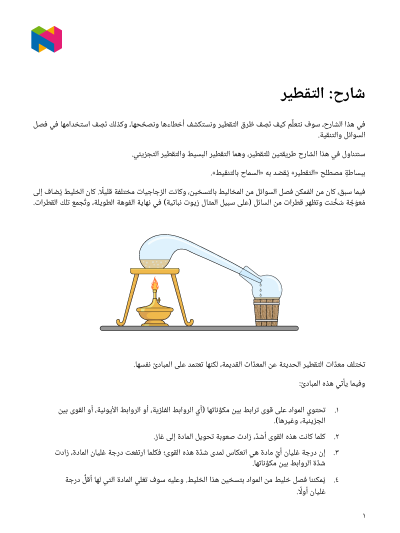 في هذا الدرس، سوف نتعلَّم كيف نَصِف ونصحِّح طُرق التقطير، وكذلك نَصِف استخدامها في فصل السوائل والتنقية.