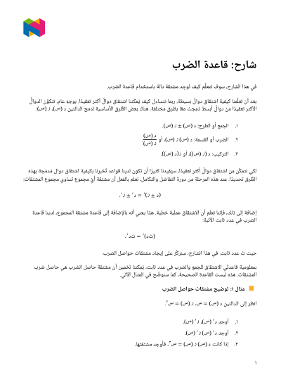 في هذا الدرس، سوف نتعلَّم كيف نُوجِد مشتقة دالة باستخدام قاعدة حاصل الضرب.