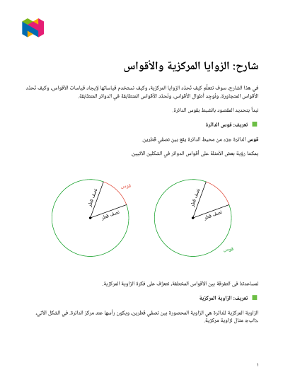 في هذا الدرس، سوف نتعلَّم كيف نحدِّد الزوايا المركزية، وكيف نستخدم قياساتها لإيجاد قياسات الأقواس، وكيف نحدِّد الأقواس المتجاورة، ونُوجِد أطوال الأقواس، ونحدِّد الأقواس المتطابِقة في الدوائر المتطابقة.