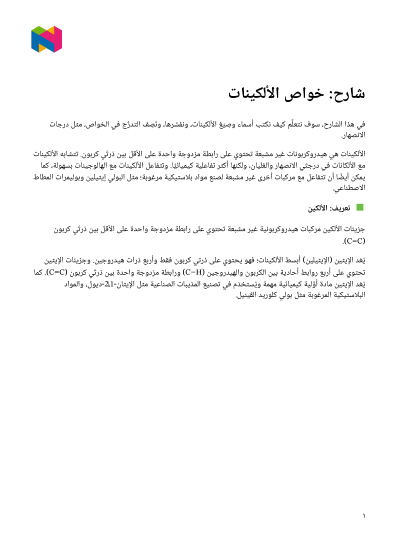 في هذا الدرس، سوف نتعلَّم كيف نكتب أسماء وصِيَغ الألكينات، ونفسِّرها، ونَصِف التدرُّج في الخواص، مثل درجات الانصهار.