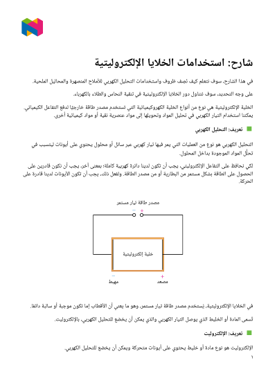 في هذا الدرس، سوف نتعلَّم كيف نَصِف ظروف واستخدامات التحليل الكهربي للأملاح المنصهرة والمحاليل الملحية.