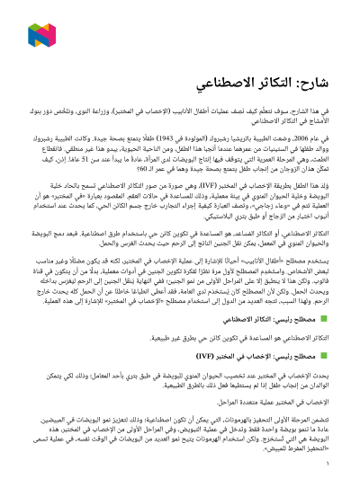 في هذا الدرس، سوف نتعلَّم كيف نَصِف عمليات أطفال الأنابيب (الإخصاب في المختبر(IVF))، وزراعة النوى، ونلخِّص دَوْر بنوك الأمشاج في التكاثر الاصطناعي.