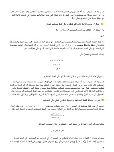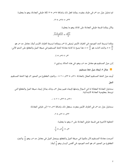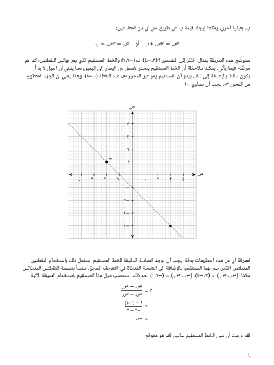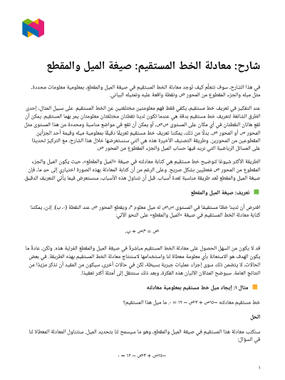 في هذا الدرس، سوف نتعلَّم كيف نُوجد معادلة الخط المستقيم في صيغة الميل والمقطع، بمعلومية معلومات محددة، مثل ميله والجزء المقطوع من المحور ص ونقطة واقعة عليه وتمثيله البياني.